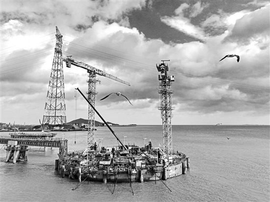 7月28日上午,隨著今年第3號臺風“格美”遠離,甬舟鐵路工程之一的西堠門公鐵兩用大橋項目各工點有序復工,一線參建者各司其職,忙著隱患排查、安全檢修、吊裝運輸、澆筑等各項工作。姚峰 攝/中新社
