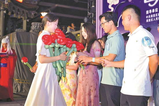 8月10日晚,由福建廈門湖里區委、區政府指導,區總工會聯合多家單位主辦的仙岳山脫單大集活動吸引了近千名青年職工現場“趕集”。活動現場,情歌快閃、釣巧果等創意互動讓職工在歡笑中拉近了距離。