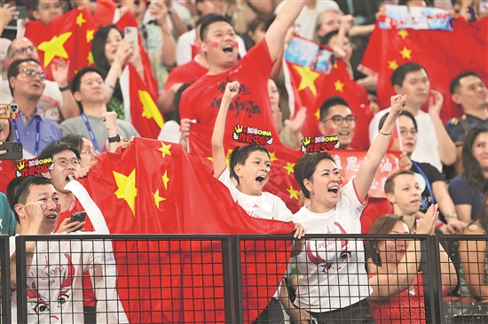 圖為現場觀眾為中國隊助威。本報特派記者 楊登峰 攝