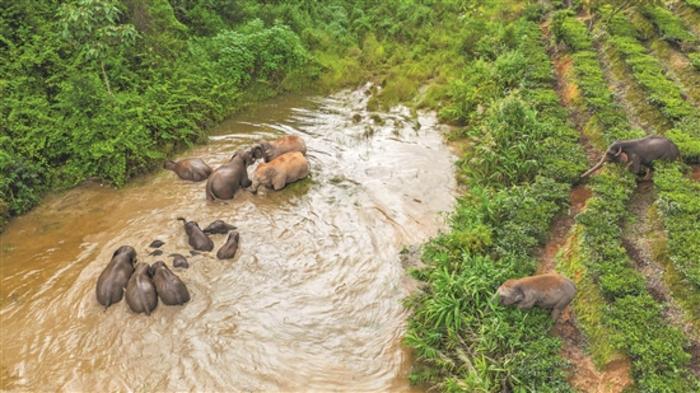 目前象群一分為二,7頭與“然然家族”的28頭野象共同活動在景洪市大渡崗鄉,13頭在西雙版納國家級自然保護區勐養片區江邊一帶活動。