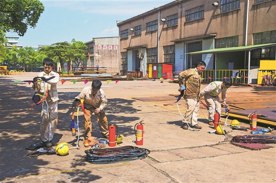 8月2日,浙江寧波舟山港股份有限公司北侖礦石碼頭分公司機(jī)修分部修理三班舉行“最佳搭檔”崗位技能大練兵活動(dòng)。通過(guò)抽簽配對(duì),比拼防護(hù)用品穿戴與焊工技能,弘揚(yáng)工匠精神,增強(qiáng)團(tuán)隊(duì)協(xié)作能力。圖為班組職工在比拼防護(hù)用品穿戴的場(chǎng)景。