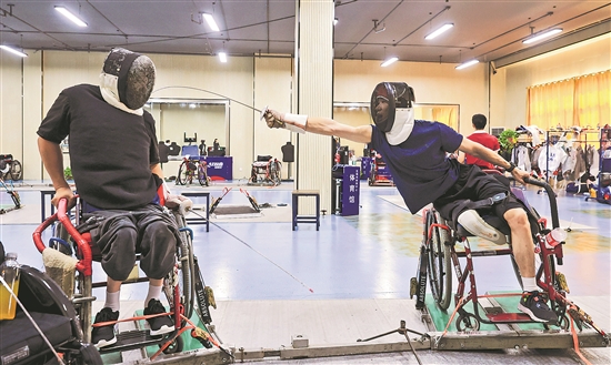 近日,中國輪椅擊劍集訓(xùn)隊(duì)(江蘇組)在江蘇南京的江蘇省殘疾人文化體育指導(dǎo)中心集訓(xùn),備戰(zhàn)即將舉行的巴黎殘奧會。