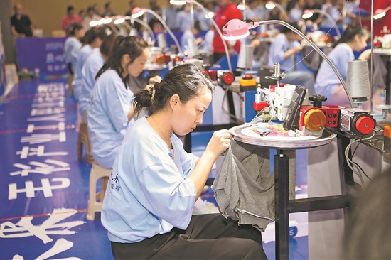 8月12日,由江蘇省蘇州市吳江區總工會牽頭主辦的2024年長三角區域毛衫產業工人職業技能競賽在吳江區橫扇街道舉行。60名選手同臺比武,展現“毛衫匠人”技能水平。現場,選手花14分鐘~18分鐘即可將一件毛衫縫合好,最快的選手僅用時11分鐘。本報記者 黃洪濤 攝