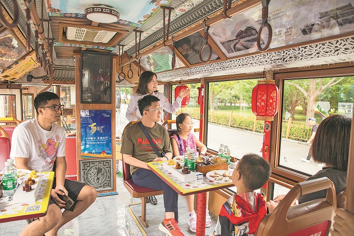 8月17日,大美中軸線觀光巴士在北京中軸線開通。該線路巴士均采用新型仿古鐺鐺車,游客可全面游覽15處古都之脊的文化遺產(chǎn),體驗(yàn)壯美有序、古今交融的城市畫卷。當(dāng)日,北京旅游集散中心共優(yōu)化開通了8條以大美中軸、潮朝陽等為主題的觀光巴士線路,旨在提供全新的旅游觀光體驗(yàn),為北京文旅市場注入新活力。