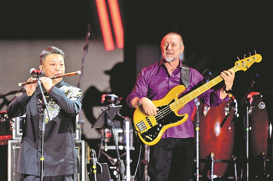 當地時間8月17日,在巴西首都巴西利亞,來自中國和巴西的音樂家在沙灘藝術節中國日活動上表演合奏。新華社發(盧西奧·塔沃拉 攝)