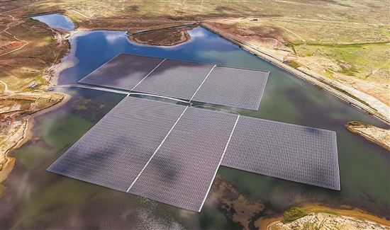 這是8月20日拍攝的位于寧夏靈武市馬家灘鎮的一處漂浮分布式光伏發電項目。
