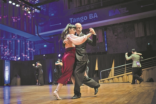 近日,在阿根廷首都布宜諾斯艾利斯,參賽舞者在世界探戈錦標(biāo)賽的預(yù)選賽上跳探戈。
