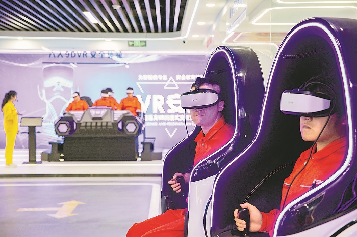 8月21日,在中國(guó)能建易普力股份有限公司新疆準(zhǔn)東經(jīng)濟(jì)技術(shù)開(kāi)發(fā)區(qū)的智能化安全體驗(yàn)培訓(xùn)中心,新入職職工正進(jìn)行崗前培訓(xùn),通過(guò)VR模擬爆破飛石、排土場(chǎng)翻車(chē)事故等警示案例,提高職工安全生產(chǎn)意識(shí)。近年來(lái),中國(guó)能建易普力公司在新疆準(zhǔn)東宜化五彩灣一號(hào)露天煤礦進(jìn)行智能化設(shè)備改造,推進(jìn)礦山向智能化、綠色化轉(zhuǎn)型。本報(bào)記者 王偉偉 攝