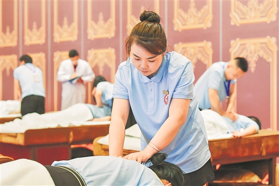 日前,安徽省商貿服務業技能競賽暨第9屆全省沐浴足浴行業職業技能競賽在合肥舉辦。沐浴足療保健行業從業人員參加全身按摩師、足部按摩師的理論和實操考試,通過競賽弘揚工匠精神,提升服務水平。
