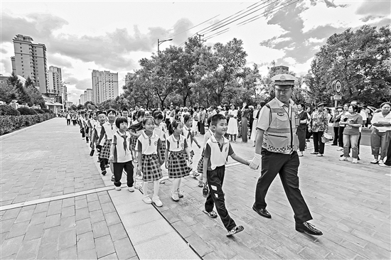 8月26日,甘肅省平?jīng)鍪嗅轻紖^(qū)迎來(lái)2024年秋季開學(xué)。為保障轄區(qū)各學(xué)校有序開學(xué),維護(hù)學(xué)校周邊社會(huì)治安平穩(wěn)有序,平?jīng)鍪泄簿轴轻挤志纸谎簿箨?duì)及轄區(qū)派出所民輔警深入中小學(xué)、幼兒園周邊重點(diǎn)路段,開啟常態(tài)化護(hù)學(xué)模式,全力以赴站好“護(hù)學(xué)崗”,守護(hù)開學(xué)季。本報(bào)通訊員 鄭兵 攝