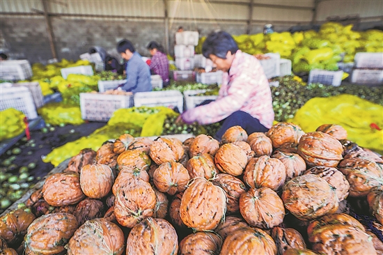 近年來,河北省遵化市的核桃種植銷售專業合作社適應市場需要,積極開展鮮核桃收購、加工、外銷工作,減少了晾曬儲存費用,增加了農民收入。新華社發 (劉滿倉 攝)