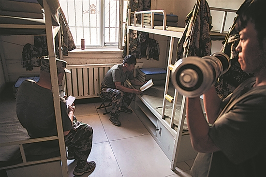 8月28日,護邊員利用閑暇時間在宿舍學習、鍛煉。