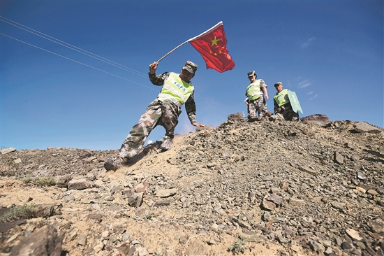 8月28日,護邊員在邊防線上進行巡防工作。