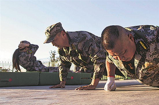 8月29日,護邊員在一起進行體能訓練。