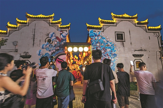 8月10日晚,在浙江省金華市金東區“歸鄉·坡陽夜肆”,游客們暢游古街,感受市井繁華。本報通訊員 胡肖飛 攝