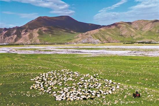 8月27日,新疆維吾爾自治區(qū)巴音郭楞蒙古自治州,牧民正趕著羊群行進(jìn)在天山腳下,前往秋牧場。從8月末至9月初,新疆多地陸續(xù)進(jìn)入秋季轉(zhuǎn)場高峰期。