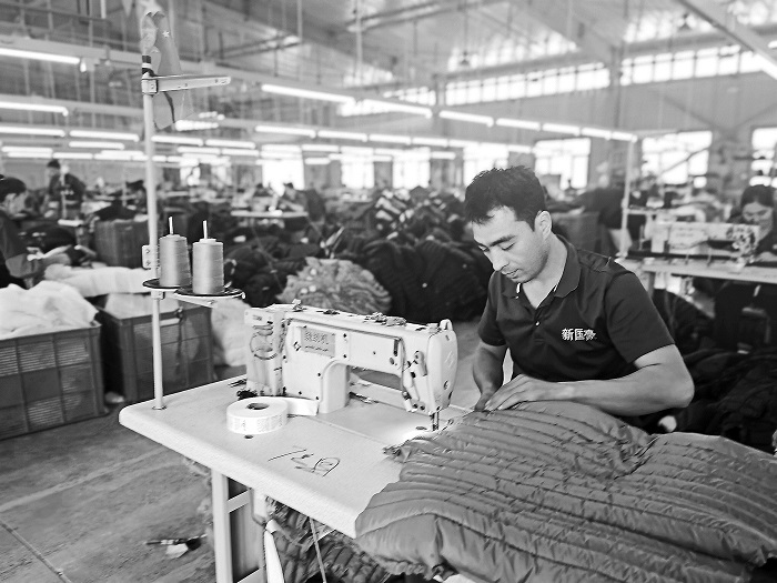 8月28日,新疆葉城縣新國豪制衣有限責任公司員工正在車間制衣。葉城縣阿克塔什鎮是新疆最大的異地扶貧搬遷安置區。當地按照“宜工則工”的原則,引進8家勞動密集型企業入駐,形成以紡織服裝、日化等為主的產業園區,吸納800余人穩定就業,讓大山里的農牧民變身產業工人,實現家門口“有事做、有錢賺、有奔頭”。本報記者 吳鐸思 攝