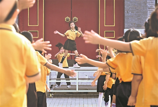 自今年秋季學期起,北京全市義務教育學校把“課間10分鐘”整體優化為“課間15分鐘”。通過擴容課間“能量站”,確保師生得到較充裕的休息時間,引導學生走出教室、走向戶外、走進陽光,促進身心健康發展。