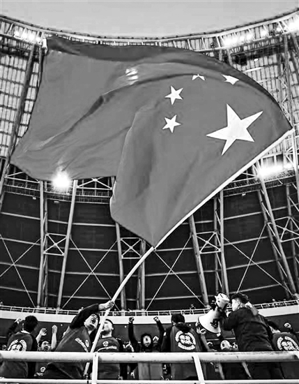 國足球迷在看臺揮舞五星紅旗。受訪者供圖