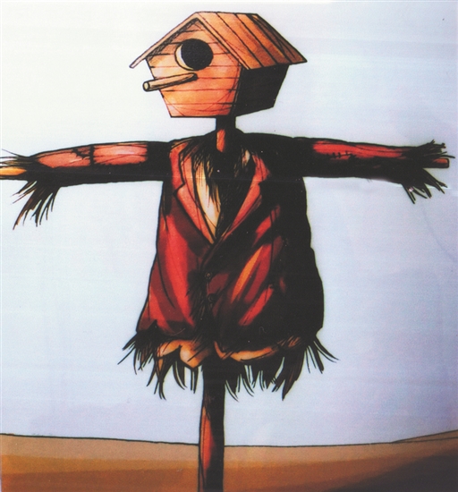 稻草人在田野上威風(fēng)凜凜震懾著來往的各種鳥兒,隨著環(huán)境的改善,人類與動物和諧相處,草人經(jīng)過改裝成為鳥兒的新居。