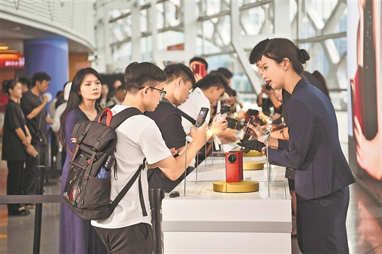 9月10日,觀眾在發布會現場體驗華為手機。
