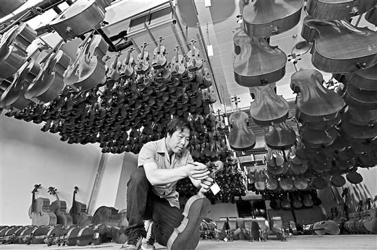 近年來(lái),肅寧縣積極引導(dǎo)當(dāng)?shù)孛褡鍢?lè)器制造企業(yè)轉(zhuǎn)型升級(jí),逐步構(gòu)建起現(xiàn)代化、企業(yè)化生產(chǎn)經(jīng)營(yíng)模式,并引進(jìn)了鋼琴、提琴等西洋樂(lè)器生產(chǎn)企業(yè),著力推進(jìn)“民族+西洋”樂(lè)器產(chǎn)業(yè)集群的形成。目前,肅寧縣已發(fā)展樂(lè)器相關(guān)企業(yè)300余家,從業(yè)人員超過(guò)1.5萬(wàn)人,年產(chǎn)各類(lèi)樂(lè)器100多萬(wàn)件。新華社記者 牟宇 攝