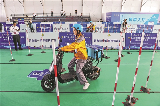 9月11日,選手在比賽場地參加網約配送員比賽。該賽項首次進入國家級比賽。