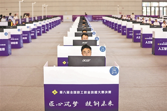 自2003年起,全國總工會聯合有關部門已共同舉辦7屆全國職工職業技能大賽,每3年一屆。本屆大賽啟動以來,已組織3萬多名職工參加省級選拔賽,帶動770萬名職工參與。大賽突出數智化理念,在“職工之家”APP開設網上練兵專區,廣泛組織全國職工學習練兵,參與人次達176萬。