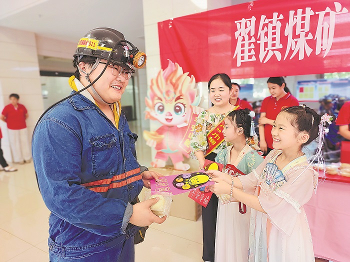 9月17日,山東能源新礦集團翟鎮煤礦組織開展“情暖中秋 平安礦山”祝福送基層活動。在井口等候室,該礦工會組織“新礦心”志愿者、“和美心”巾幗志愿者、安全協管員、職工子女支起攤位、擺好月餅,通過安全知識有獎問答、“談心式”宣講的形式,引導職工學規范。本報記者 田國壘 本報通訊員 劉玉玲 攝