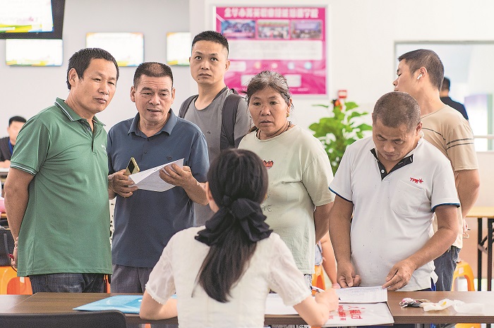 9月18日,浙江省金華市婺城區(qū)零工市場內(nèi),求職者在尋找招聘信息。