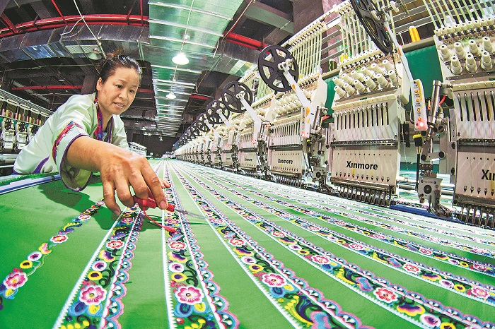 近年來,貴州省黔東南苗族侗族自治州從江縣通過減稅降費、助企紓困等政策,加大對民族刺繡產業的扶持力度,引進智能繡花設備,實現產品迭代升級,節省了人力成本,提升了生產效率,推動刺繡產業由傳統加工向數字化、智能化轉型。
