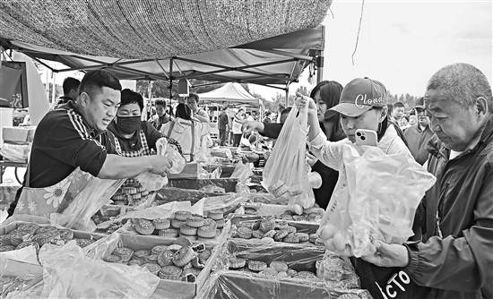 9月15日,市民和游客在紅旗大集上購(gòu)買月餅。