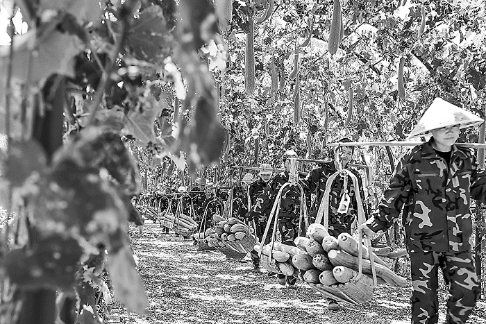 近年來,浙江省衢州市常山縣新昌鄉借力“慈常山海協作”平臺,集中流轉10個村的閑置土地發展絲瓜絡產業,打造山海協作絲瓜絡共富工坊,探索“公司+合作社+基地+農戶”的山區共富新模式,帶動集體經濟收入增長。 今年,絲瓜絡共富工坊種植面積約700畝,帶動周邊村民300余人家門口就業。圖為村民正在采摘轉運絲瓜,采摘期將持續到國慶節前后。本報通訊員 徐珊怡 攝