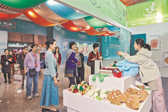 9月21日,與會嘉賓在第七屆絲綢之路(敦煌)國際文化博覽會上參觀非遺及文創精品展。