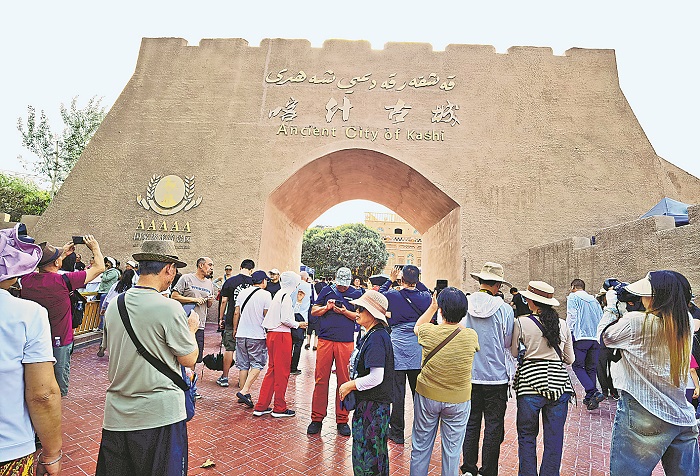 新疆喀什古城景區(qū)是我國(guó)少有的特色迷宮式城市街區(qū)和生土建筑群。如畫(huà)的自然風(fēng)光、獨(dú)特的人文風(fēng)情吸引著國(guó)內(nèi)外游客。今年1月~7月,喀什地區(qū)累計(jì)接待游客2824.25萬(wàn)人次,實(shí)現(xiàn)旅游收入241.2億元,同比分別增長(zhǎng)33.9%、41.99%。本報(bào)記者 吳鐸思 攝