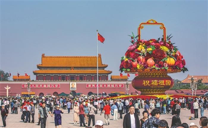 “祝福祖國(guó)”蔬果花籃亮相天安門(mén)廣場(chǎng)