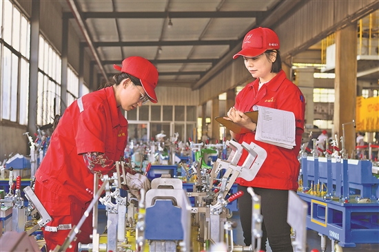 9月24日,泊頭市金鍵模具有限責任公司技術人員在產品檢測車間內工作。