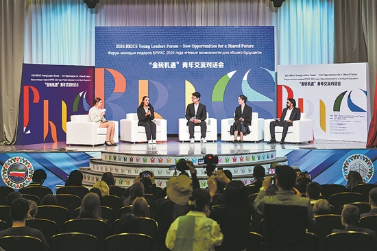 近日,“金磚機遇”青年交流對話會在俄羅斯喀山舉行。活動由中國國務院新聞辦公室指導,中國日報社、中國駐俄羅斯大使館聯合主辦,21世紀報社、俄羅斯喀山聯邦大學聯合承辦,區域間國際合作協會、喀山聯邦大學孔子學院協辦。圖為在俄羅斯喀山拍攝的“金磚機遇”青年交流對話會活動現場。新華社記者 曹陽 攝