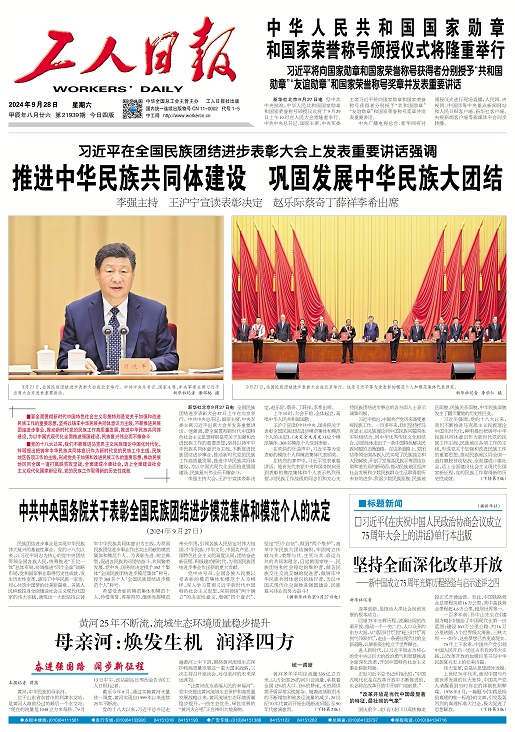 工人日?qǐng)?bào) 2024年09月28日 星期一