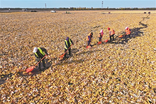9月21日,甘肅省臨澤縣倪家營鎮,數十萬畝制種玉米喜迎豐收。本報通訊員 安學海 攝
