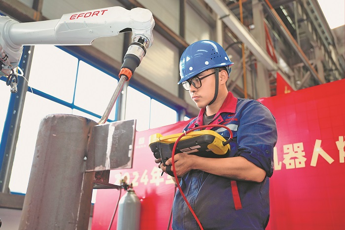 9月24日至26日,江蘇省鋼結構機器人焊接職業技能競賽決賽舉行,選手一律使用智能焊接機器人進行比拼。競賽由江蘇省機冶石化工會、省建設工會等聯合主辦。本報記者 黃洪濤 攝