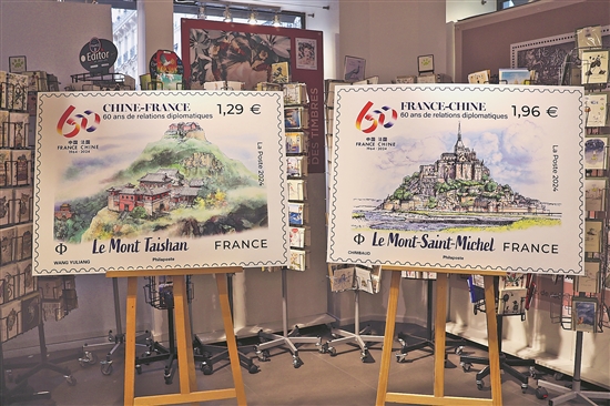 為慶祝中法建交60周年暨中法文化旅游年,由中法兩國聯合發行的《中法建交六十周年》紀念郵票首發儀式于近日在巴黎舉行。