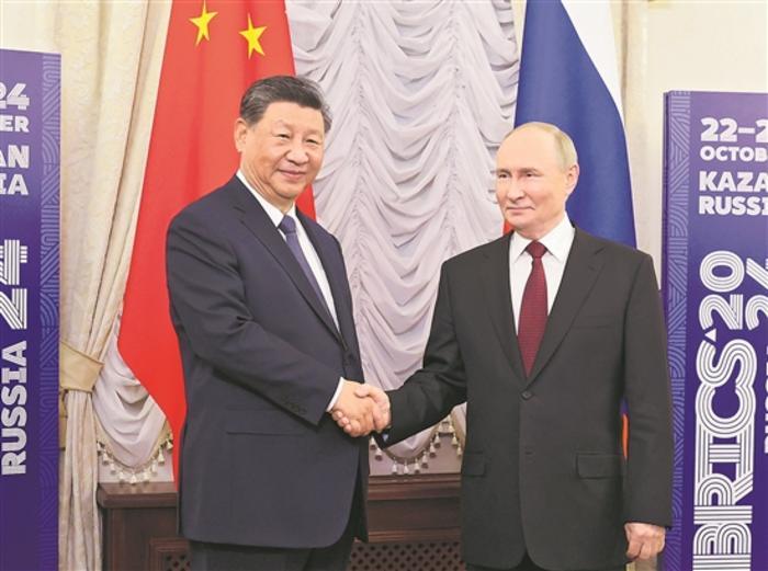 習近平指出,金磚合作機制是當今世界最重要的新興市場國家和發展中國家團結合作平臺。中方高度評價俄羅斯作為主席國為此次金磚國家領導人會晤所做工作,期待同金磚國家領導人深入探討金磚合作機制未來發展,推動各方凝聚共識,傳遞團結合作的積極信號,推進金磚國家各領域戰略協作和務實合作,為全球南方爭取更多新機遇。