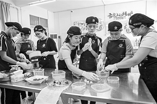 10月16日,廣西壯族自治區(qū)梧州市特殊教育學(xué)校,當(dāng)?shù)芈殬I(yè)技術(shù)學(xué)校的烹飪老師正在指導(dǎo)心智障礙學(xué)生制作甜品。近年來,該校在梧州市殘聯(lián)和教育部門的支持下開設(shè)了職教班,通過“校校合作、校企合作、校店合作”職教新模式,幫助這里的特殊學(xué)生掌握一技之能。