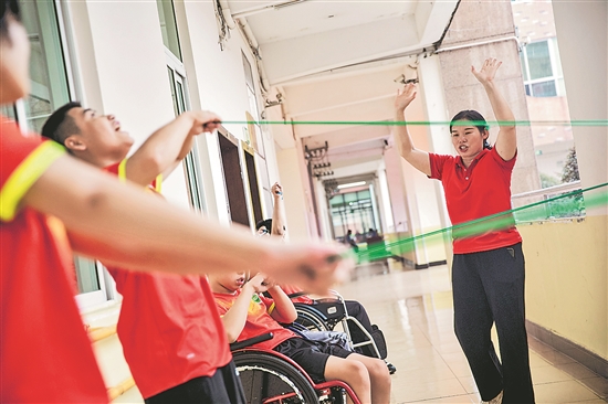 近年來,玉林市各級殘聯與教育部門探索殘障孩子康復新路徑,通過設置多樣化的教學模式,開展“醫教結合”“陽光體育康復活動”等,幫助學生克服身心障礙,融入社會。