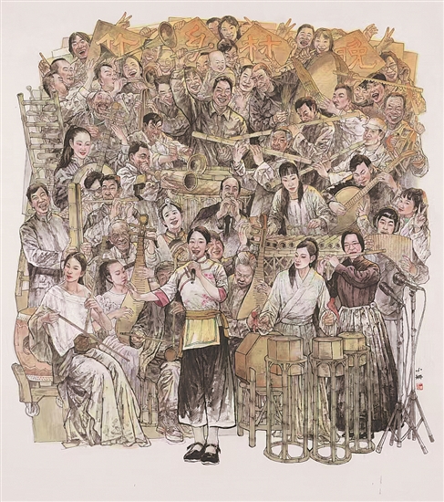 竹鄉(xiāng)村晚(國(guó)畫) 浙江 羅小珊