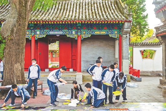 10月22日下午,首場“民族團結(jié)心相映 京澳共話愛國情” 主題的快拼快閃活動在北京市第十三中學舉行。在場學生共同完成一幅長20米、高4米的巨型拼圖。圖為校園內(nèi)師生協(xié)力完成拼圖。