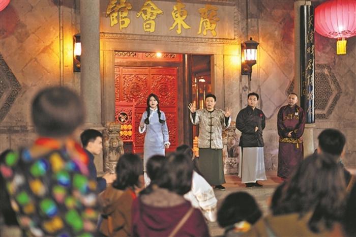 位于天津市南開區的廣東會館有百余年歷史,是天津戲劇博物館的所在地。近期,該會館引進了沉浸式互動戲劇項目“百年有戲 大河向東”,吸引大量觀眾以深度體驗的方式參與其中,感受戲劇藝術的魅力。新華社記者 趙子碩 攝
