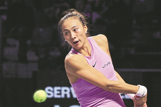 鄭欽文在比賽中回球。新華社記者 王海洲 攝