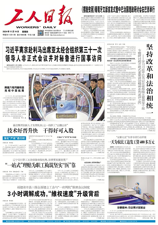工人日?qǐng)?bào) 2024年11月14日 星期一